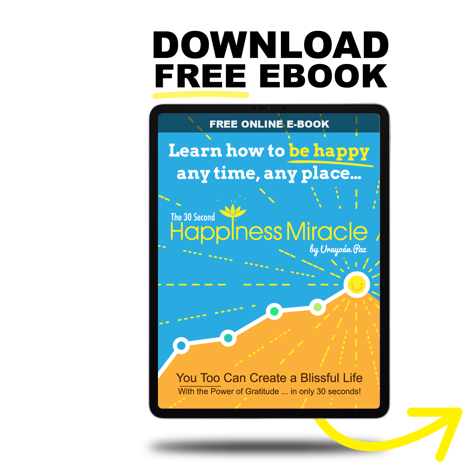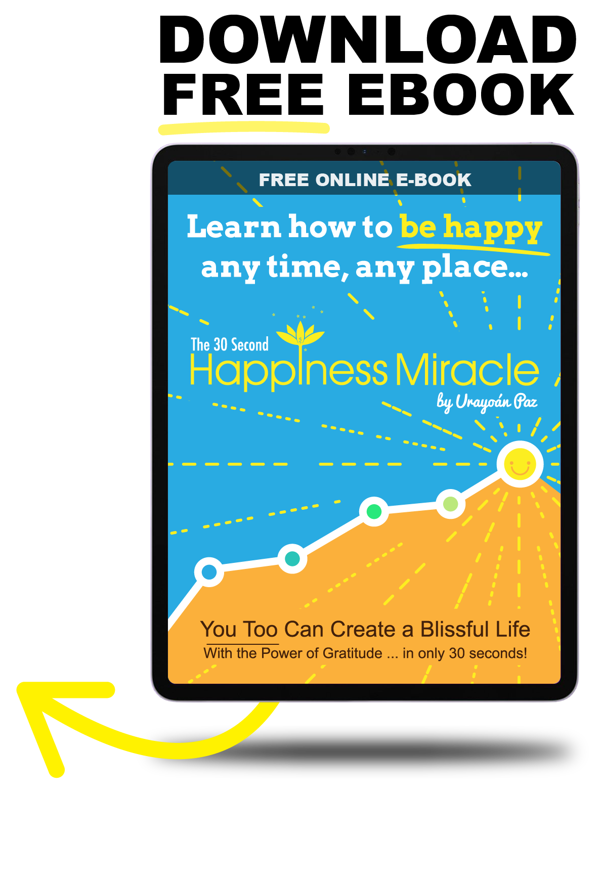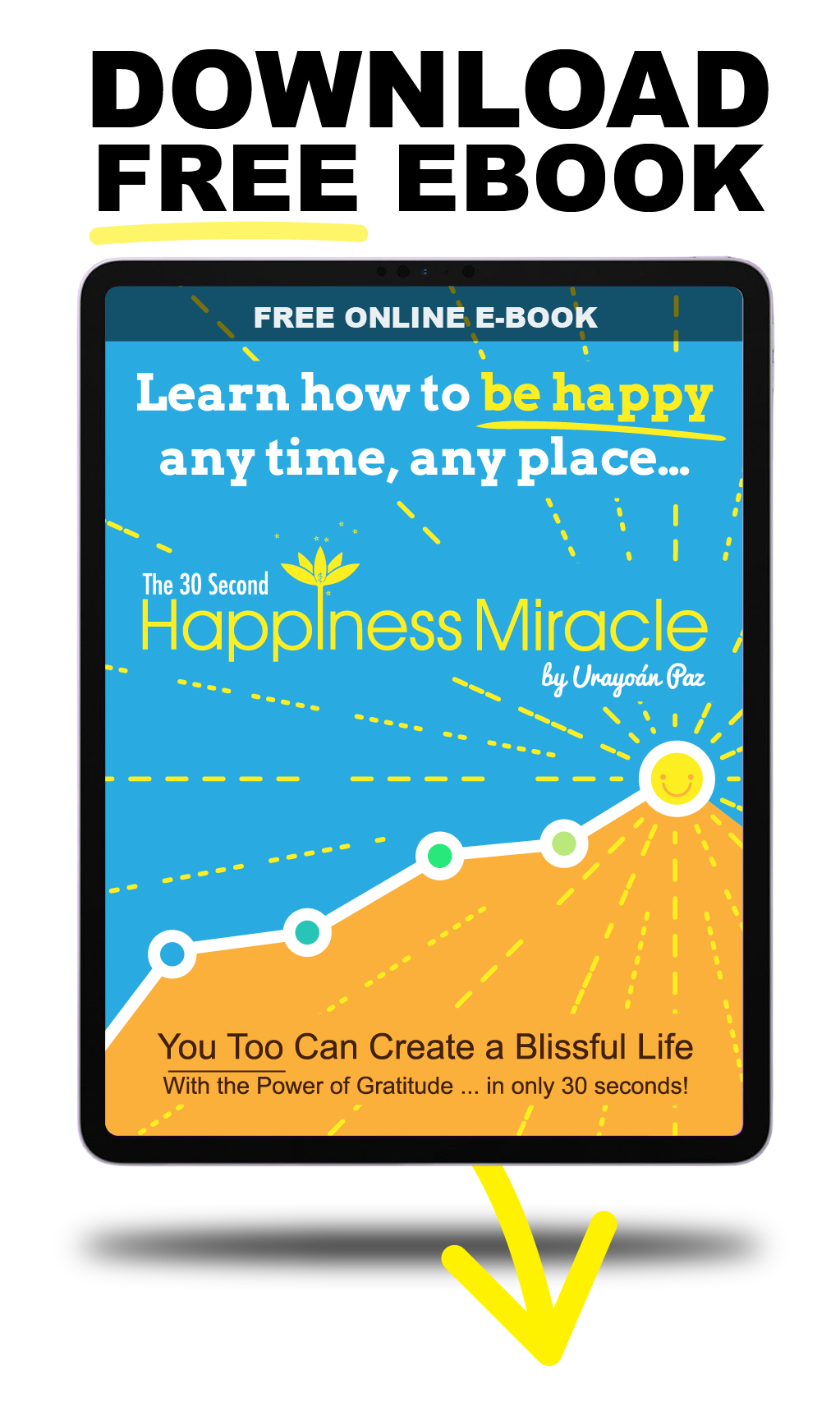 The 30 Second Happiness Miracle offered here is comprehensive yet compact. It goes straight to the point but shows you important pointers along the way. If you don't know what meditation is or have tried it but found it way too difficult or time-consuming, don't worry. Gratitude-Bliss Meditation was designed for the person "on-the-go" in a real-life city situation. It's as simple as humanly possible and anyone can do it in 4 easy steps. Whether you live in the city or the countryside; in the U.S. or in Russia, you can do it.